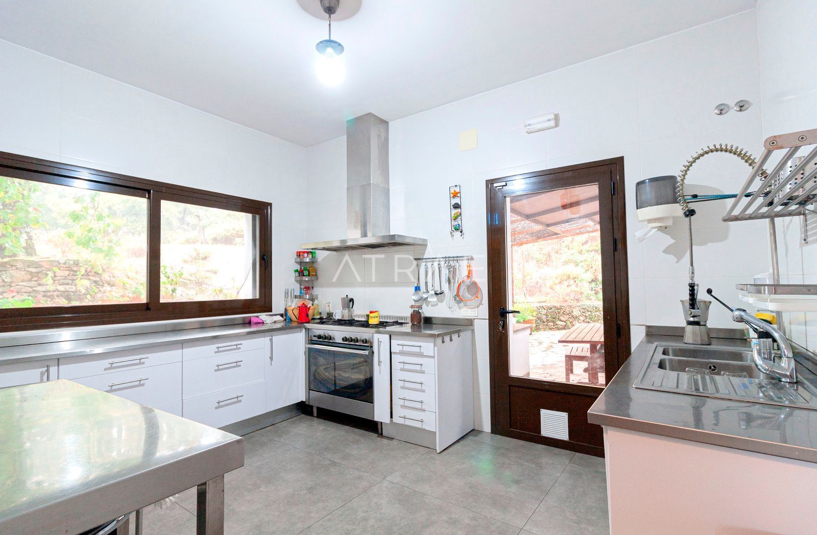 Un patio exterior anexo a la cocina permite disfrutar de una deliciosa barbacoa al aire libre, o de ricos platos cocinados en horno de leña.